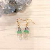 フローライト・クリソプレーズ・Mixベリルフックピアスゴールド