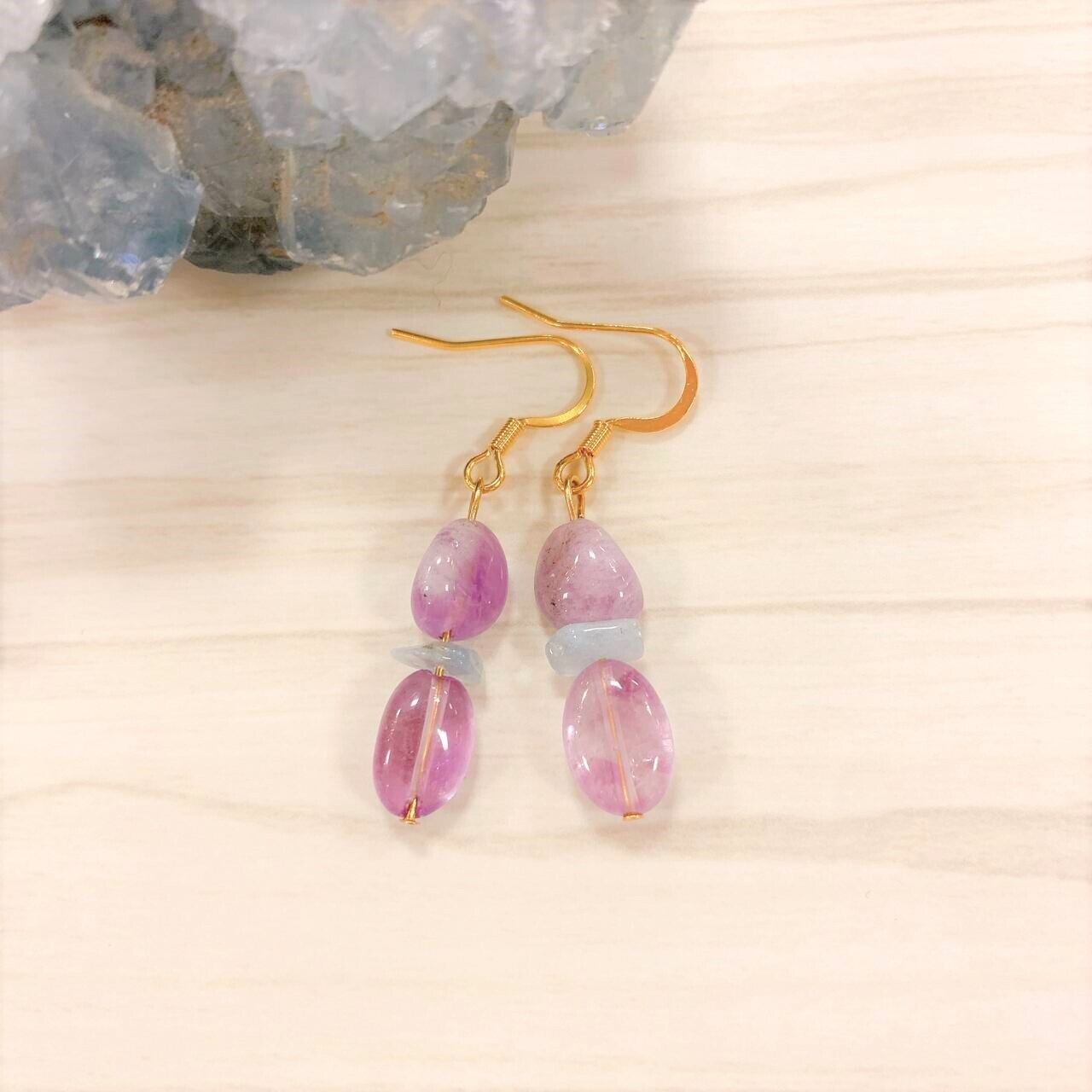 ラベンダーアメジスト・アクアマリンフックピアスゴールド