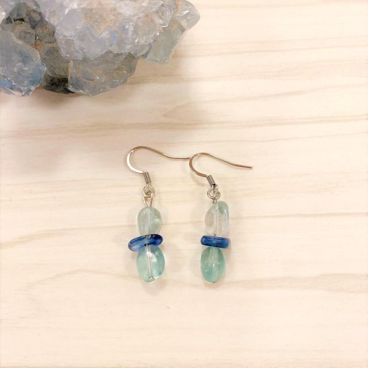 フローライト・カイヤナイトフックピアスシルバー