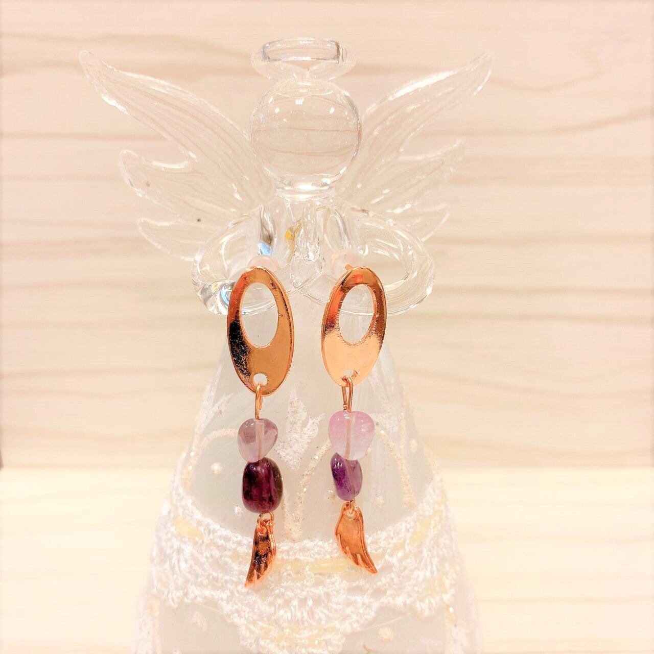 天使の羽・ラベンダーアメジスト・アメジストピアスピンクゴールド