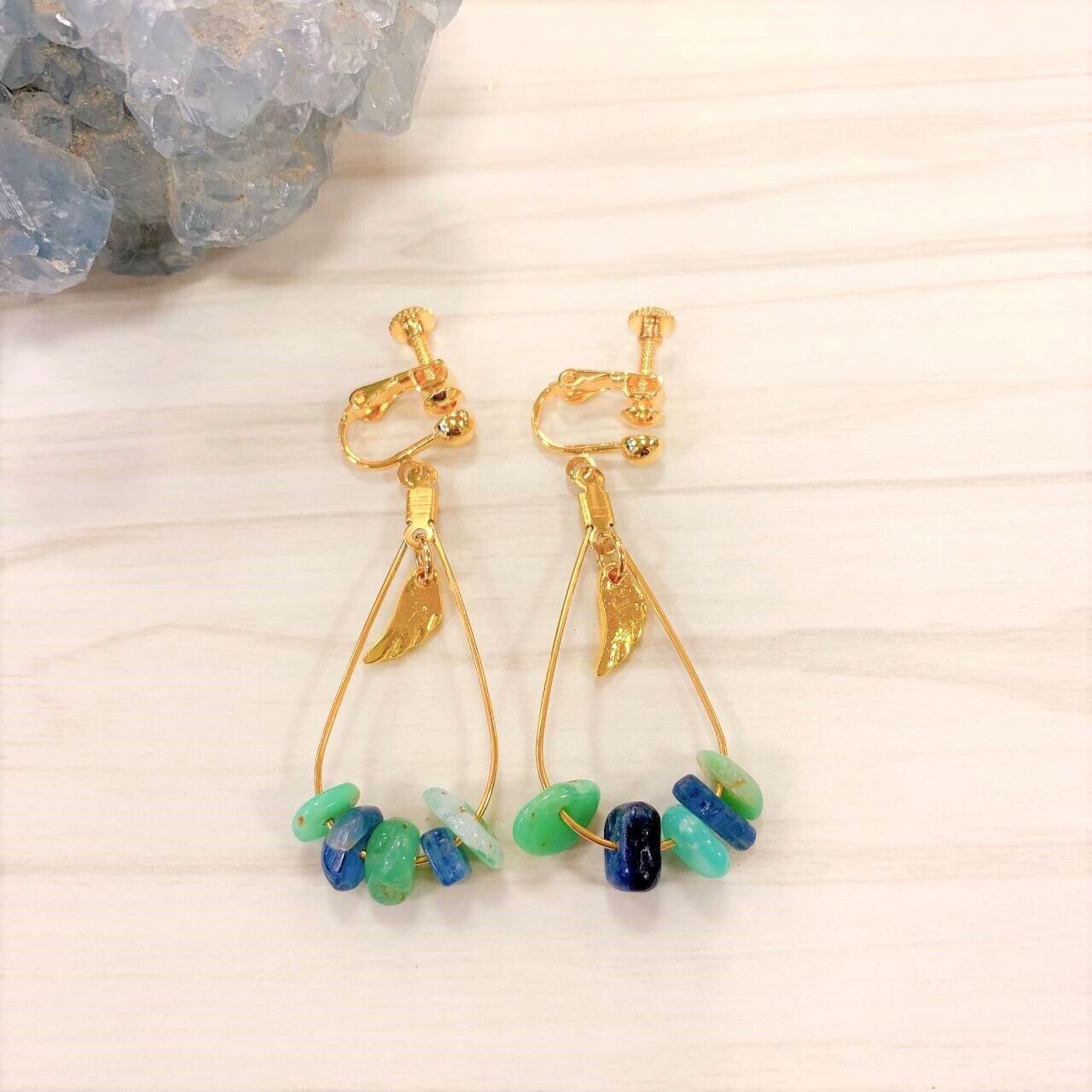 天使の羽・クリソプレーズ・カイヤナイトフープイヤリングゴールド